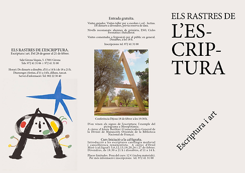 Aquest projecte consistia a crear un tríptic. Per fer aquest projecte vam haver d'utilitzar un nou programa, l'InDesign. Havíem de fer el tríptic amb les mides d'un A3: 420x297 mm. El contingut que havia de portar era la informació sobra una exposició "Els rastres de l'Escriptura" saben de què anava havíem de fer-lo coherent al que hi deia.